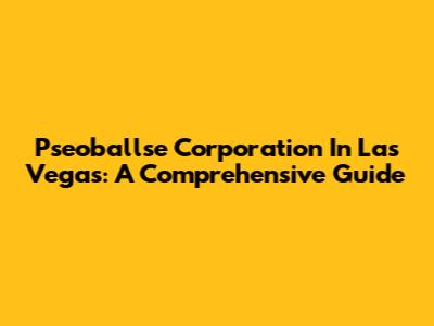 Pseoballse Corporation In Las Vegas: A Comprehensive Guide
