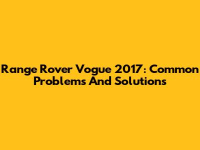 Range Rover Vogue 2017: Common Problems And Solutions