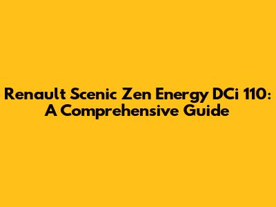 Renault Scenic Zen Energy DCi 110: A Comprehensive Guide