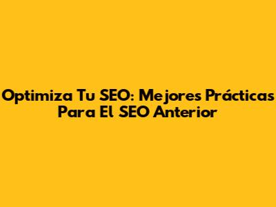 Optimiza Tu SEO: Mejores Prácticas Para El SEO Anterior
