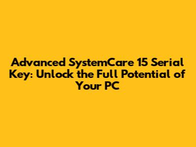 Advanced SystemCare 15 Serial Key: Get It Now!