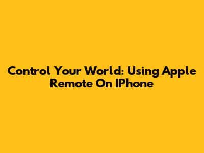 Control Your World: Using Apple Remote On IPhone