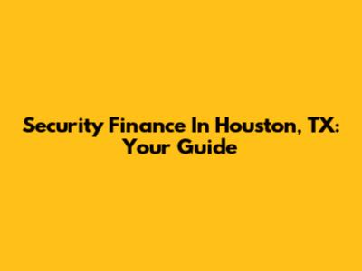 Security Finance In Houston, TX: Your Guide