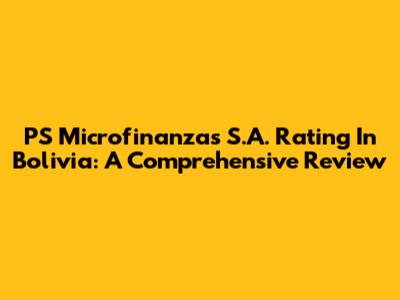 PS Microfinanzas S.A. Rating In Bolivia: A Comprehensive Review