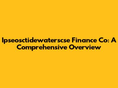 Ipseosctidewaterscse Finance Co: A Comprehensive Overview