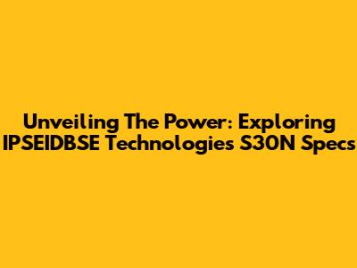 Unveiling The Power: Exploring IPSEIDBSE Technologies S30N Specs