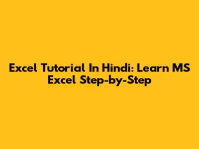 Excel Tutorial In Hindi: Learn MS Excel Step-by-Step