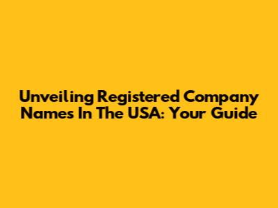 Unveiling Registered Company Names In The USA: Your Guide