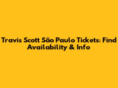 Travis Scott São Paulo Tickets: Find Availability & Info