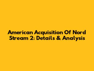 American Acquisition Of Nord Stream 2: Details & Analysis