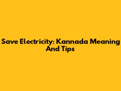 Save Electricity: Kannada Meaning And Tips