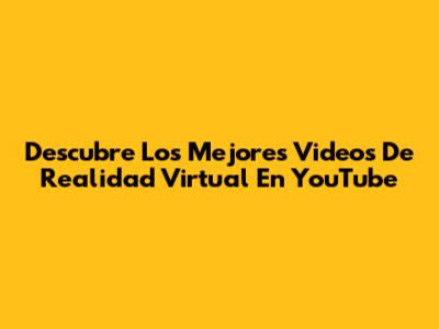 Descubre Los Mejores Videos De Realidad Virtual En YouTube