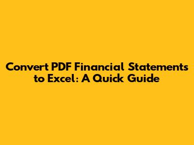 Converting PDF financial statements to Excel doesn't have to be a daunting task. By following these tips and using the right tools, you can efficiently extract your financial data and unlock its full potential. Happy converting, and may your spreadsheets always balance!