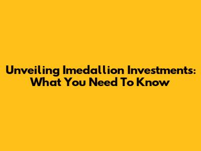 Unveiling Imedallion Investments: What You Need To Know