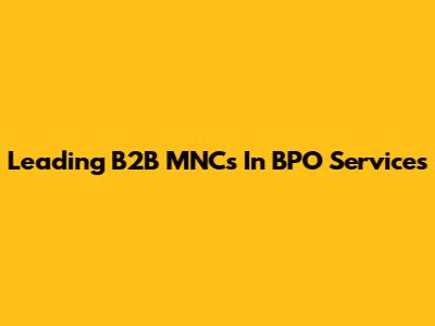 Leading B2B MNCs In BPO Services