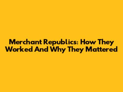 Merchant Republics: How They Worked And Why They Mattered