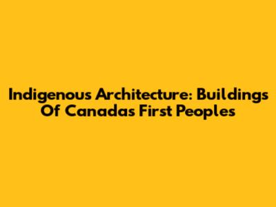 Indigenous Architecture: Buildings Of Canada's First Peoples