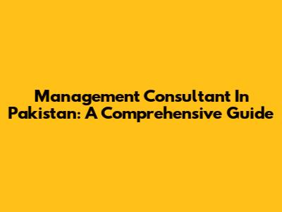 Management Consultant In Pakistan: A Comprehensive Guide