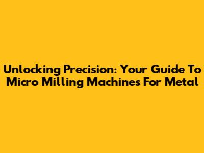 Unlocking Precision: Your Guide To Micro Milling Machines For Metal