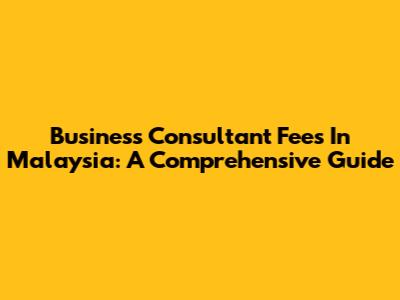 Business Consultant Fees In Malaysia: A Comprehensive Guide