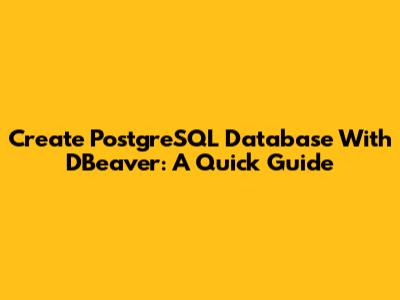 Create PostgreSQL Database With DBeaver: A Quick Guide