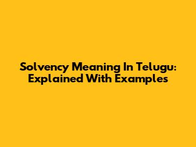Solvency Meaning In Telugu: Explained With Examples