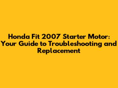 Troubleshooting Your Honda Fit 2007 Starter Motor