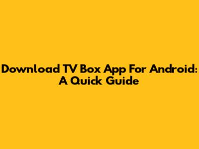 Download TV Box App For Android: A Quick Guide