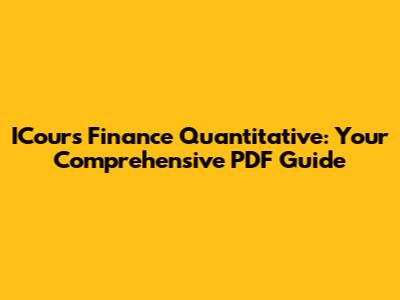 ICours Finance Quantitative: Your Comprehensive PDF Guide