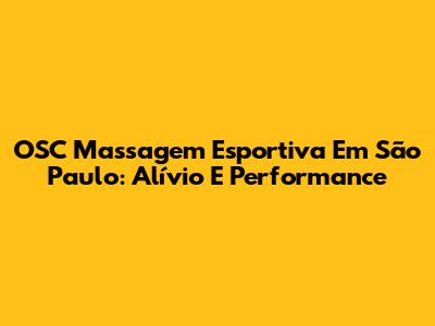 OSC Massagem Esportiva Em São Paulo: Alívio E Performance