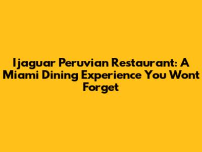 Ijaguar Peruvian Restaurant: Miami's Culinary Gem