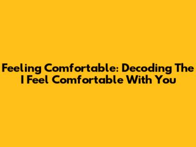 Feeling Comfortable: Decoding The 'I Feel Comfortable With You'