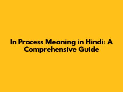 Contextual Usage: How to Use “In Process” in Hindi