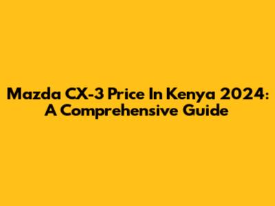 Mazda CX-3 Price In Kenya 2024: A Comprehensive Guide
