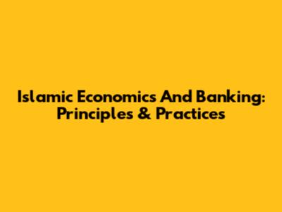 Islamic Economics And Banking: Principles & Practices