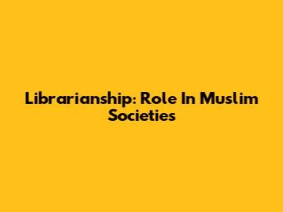 Librarianship: Role In Muslim Societies