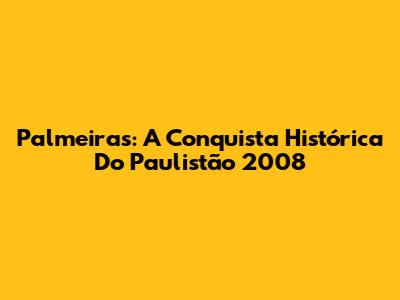 Palmeiras: A Conquista Histórica Do Paulistão 2008