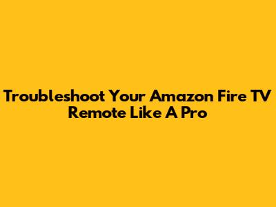 Troubleshoot Your Amazon Fire TV Remote Like A Pro