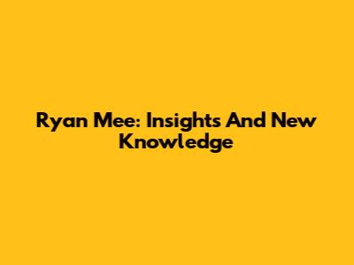 Ryan Mee: Insights And New Knowledge