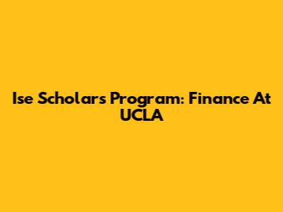 Ise Scholars Program: Finance At UCLA