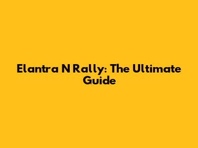 Elantra N Rally: The Ultimate Guide