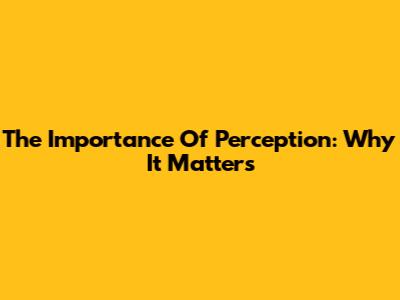 The Importance Of Perception: Why It Matters