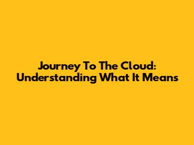 Journey To The Cloud: Understanding What It Means