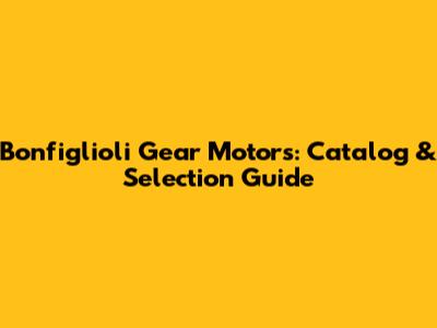 Bonfiglioli Gear Motors: Catalog & Selection Guide
