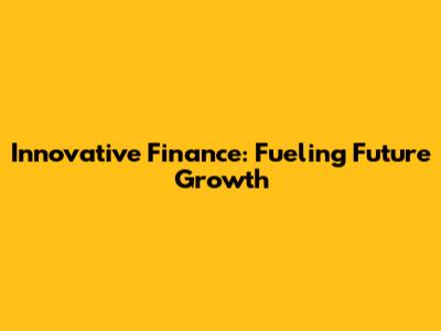 Innovative Finance: Fueling Future Growth