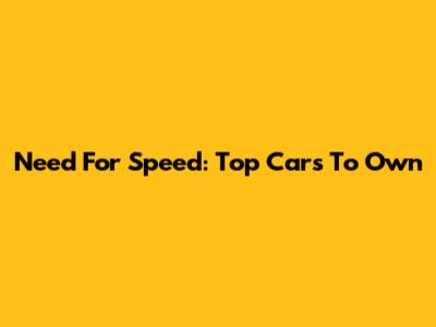 Need For Speed: Top Cars To Own