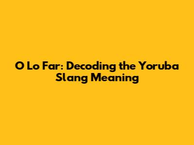 Ever stumbled upon the phrase "O lo far" and found yourself scratching your head? You're not alone! This Yoruba slang has been buzzing around, and today, we're diving deep to uncover its meaning, usage, and cultural context. Get ready to expand your slang vocabulary and impress your friends with your newfound knowledge! Let's get started, guys!