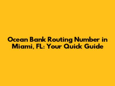 Hey there, fellow finance enthusiasts! Are you trying to navigate the sometimes-tricky waters of banking in Miami, Florida? Specifically, are you on the hunt for Ocean Bank's routing number? Well, you've come to the right place! Finding the correct routing number is super important whether you're setting up direct deposit, paying bills online, or initiating a wire transfer. Getting this number wrong can lead to delays, errors, or even your money going to the wrong place – yikes! So, let's dive in and get you all the essential information you need about the Ocean Bank routing number in Miami, FL. We'll cover everything from what it is, where to find it, and why it matters. By the end of this guide, you'll be a pro at handling all your Ocean Bank transactions with confidence. Ready to become a routing number whiz? Let's get started!
