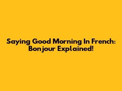 Saying Good Morning In French: Bonjour Explained!