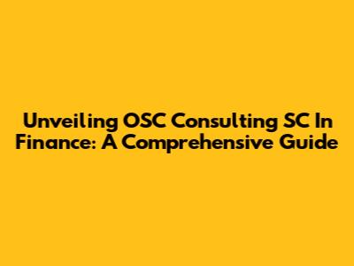 Unveiling OSC Consulting SC In Finance: A Comprehensive Guide